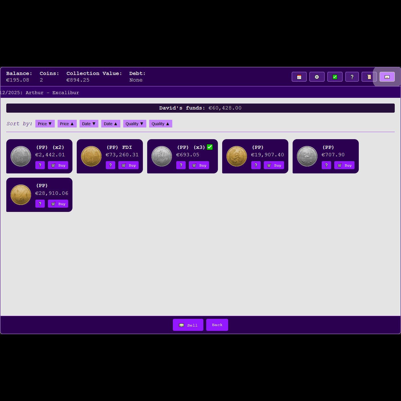 You start with €1000 (play money!!!) which you can use to buy as many coins as you like. The trick is to buy new coins, because they grow in value faster than older coins.